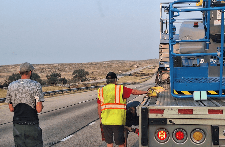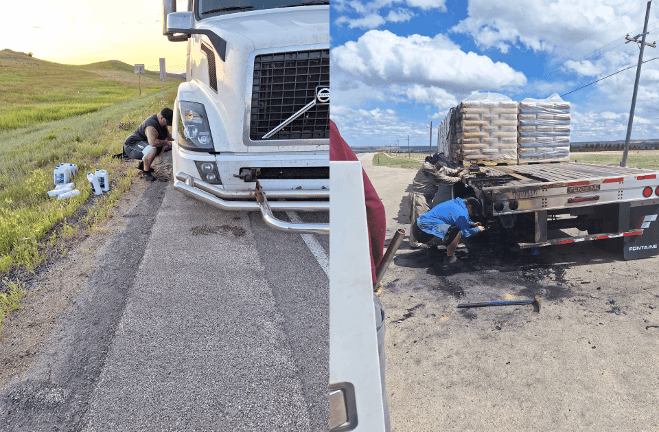 Fuel is delivered directly to stranded semi-trucks to keep schedules on track.